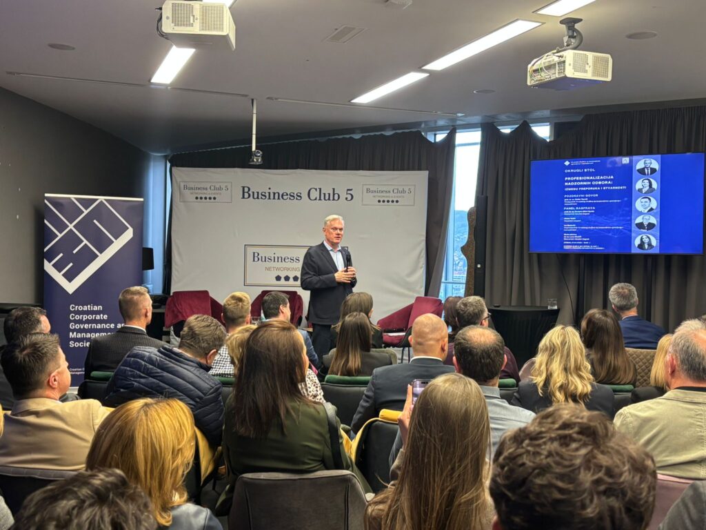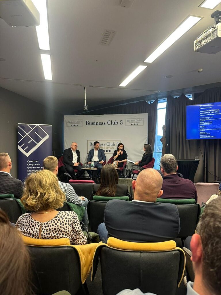 On Tuesday, March 31, 2026, a round table discussion titled “Professionalization of Supervisory Boards: Between Recommendations and Reality” was held at the Business Club 5 venue, Sky Office in Zagreb. The event was organized by the Croatian Corporate Governance and Management Society and it brought together representatives from the professional and business communities, confirming strong interest in advancing corporate governance practices in Croatia.