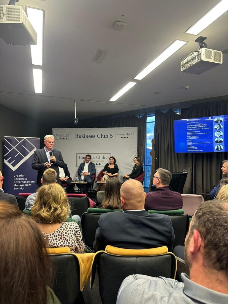 U utorak, 31. ožujka 2026. godine, u prostoru Business Club 5, Sky Office u Zagrebu, održan je okrugli stol pod nazivom „Profesionalizacija nadzornih odbora: između preporuka i stvarnosti“, u organizaciji Hrvatskog društva za korporativno upravljanje i menadžment. Događaj je okupio predstavnike stručne i poslovne javnosti, potvrdivši veliki interes za unaprjeđenje praksi korporativnog upravljanja u Hrvatskoj.